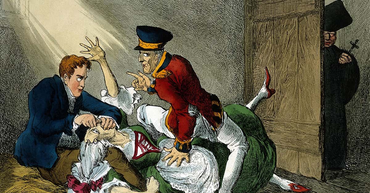 Wikimedia Commons Burke and Hare suffocating Mrs Docherty for sale to Dr. Knox