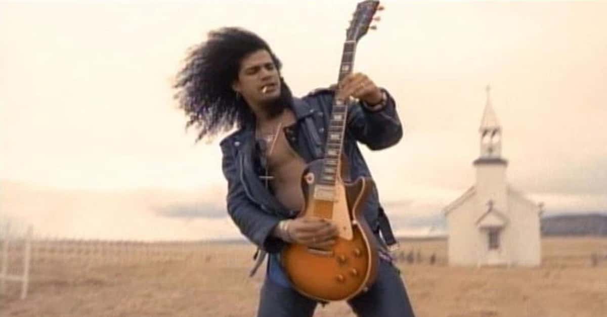 The video takes place within a non-linear narrative—perhaps adding to the realm of questions that arose to those of us who first watched it as kids or teens who had yet to understand fluid narrative structure. In between scenes of the band playing with what looks like a 70-person orchestra/backing band at Los Angeles’ Orpheum Theater are the narrative threads. One shows singer Axl Rose fitfully trying to sleep in a blue-lit bedroom, while another shows him entering a run-down church in the desert which for some reason suddenly fades away thanks to some very melodramatic visual effects very befitting of the era.
