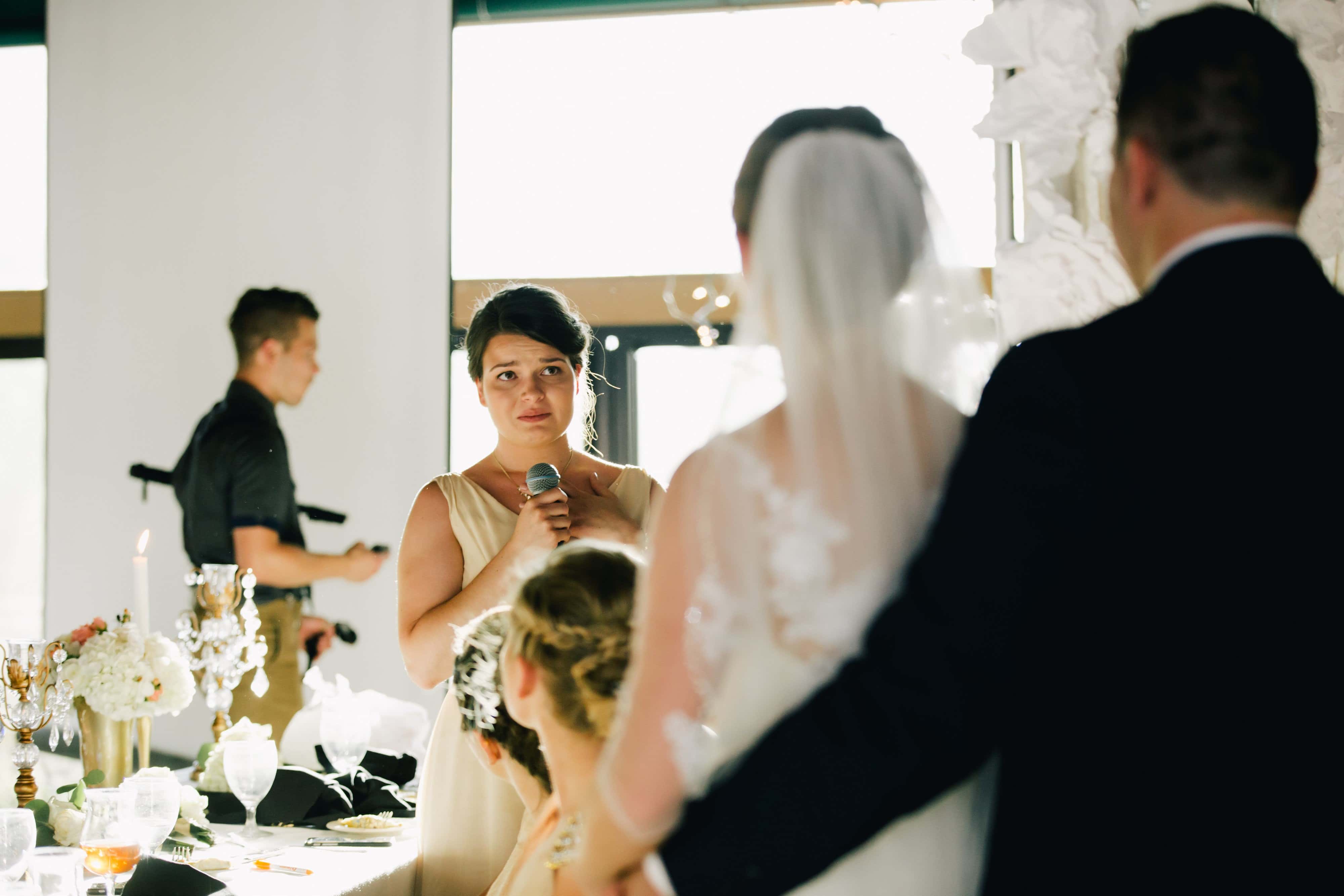 My friend forced her entire bridal party to write a speech for the rehearsal dinner. I couldn't enjoy the dinner I was so nervous, but I managed to sputter something out after 3 glasses of wine. Some of the others were so uncomfortable. They were either a few seconds long or had uncomfortable moments of silence.