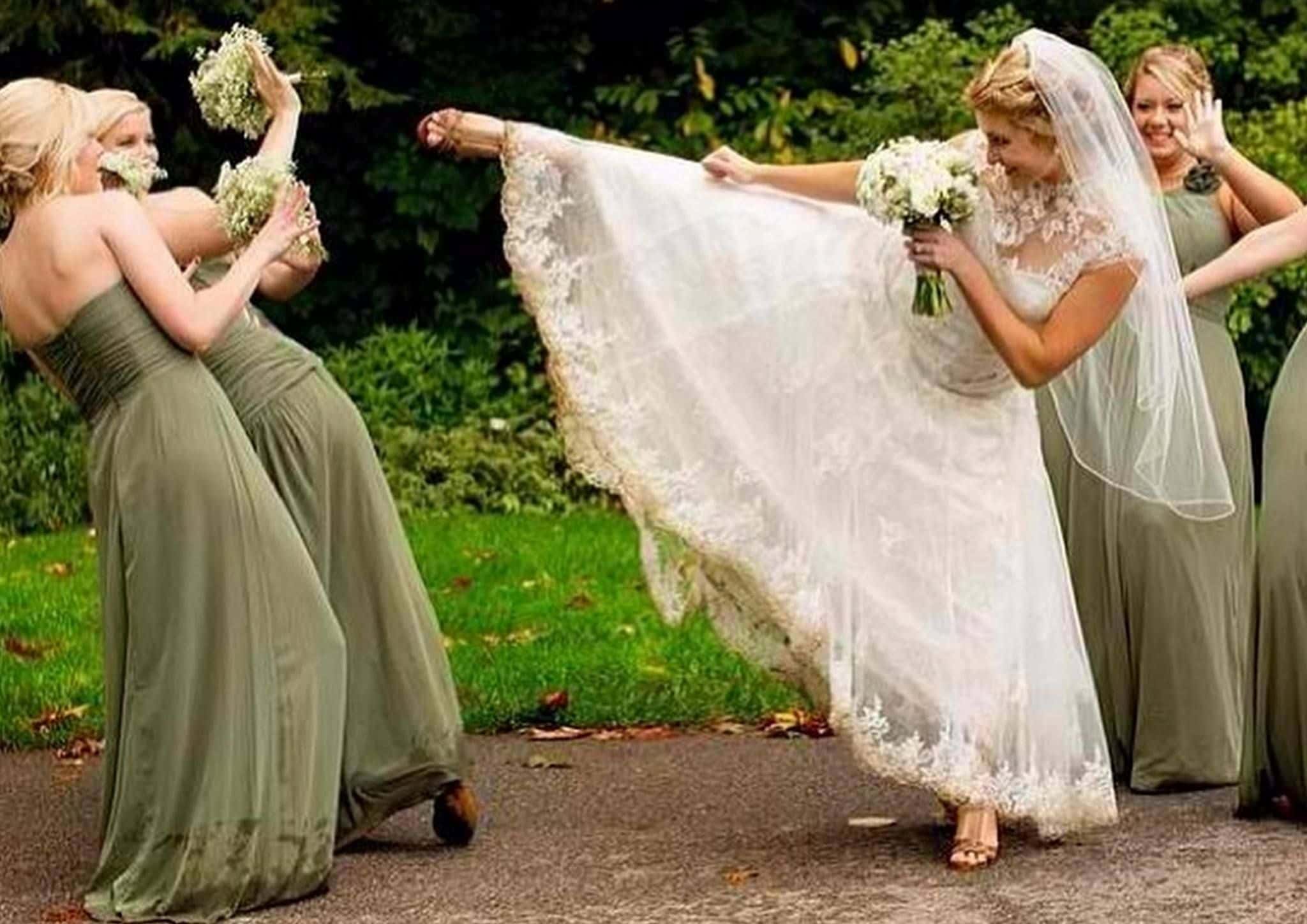 It was my wife who was one of the bridesmaids. The couple was way weird or trashy, I'm not sure which, but they wanted the entire wedding party to do a group photo in just their lingerie/boxers (except the bride and groom, "of course"). She noped out of that, but apparently, the other two girls and the groomsmen went for it.