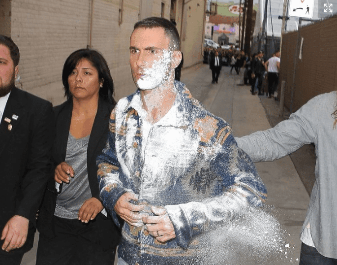 Adam Levine was once attacked outside of Jimmy Kimmel's studio by a fan who dumped powdered sugar all over him. The fan was detained and later arrested for Battery.