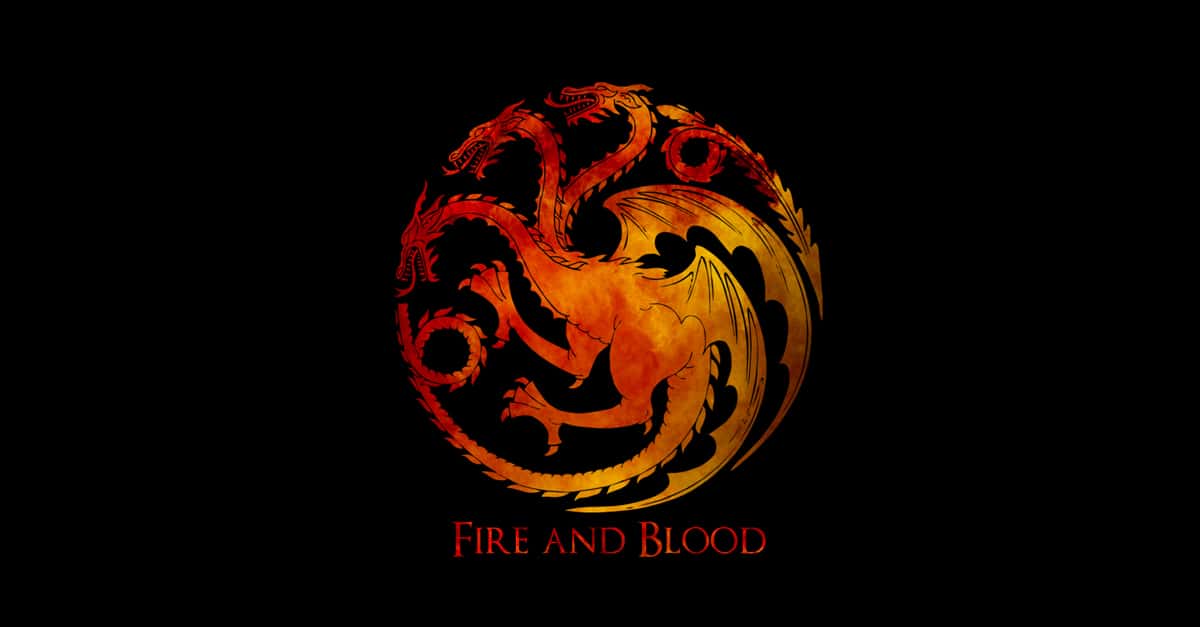 The Targaryen sigil is a red three-headed dragon on a black cloth. However, members of House Blackfyre would reverse these colors to differentiate themselves as an off-branch of House Targaryen—more on them later.