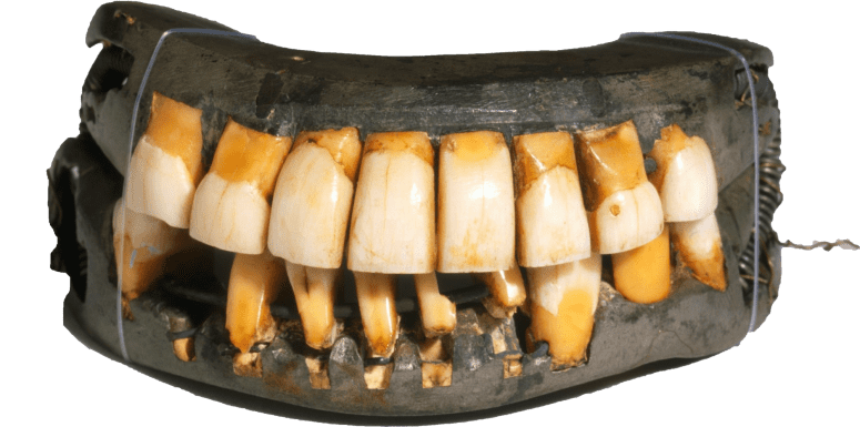 Just because Washington himself could not tell a lie, that doesn't mean everything you've heard about him is true. While it is a fact that the first President did have some serious dental issues (he lost his first adult tooth at just 22 years old and only had one left by the time he became president), none of his several sets of false teeth were made of wood. He had one set that was made of actual human teeth (gross) and another that was made of hippopotamus and elephant ivory and held together with gold springs (less gross? more gross? I can't tell).