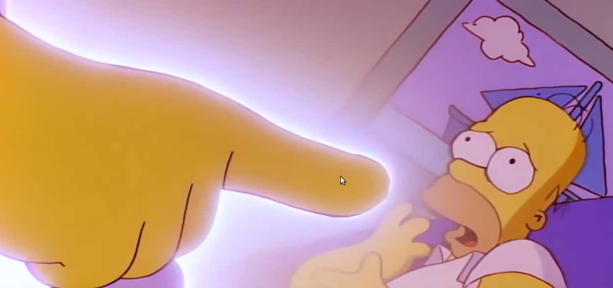 It's an often referenced fact that people in the world of The Simpsons only have four fingers, but there's one character that the animators saw fit to give the regular five: God himself. If you look closely during Homer's vision of God in the episode "Homer the Heretic," you'll notice that God, while being a large, bearded man with "Perfect teeth. A nice smell. A class act all the way," he also has the usual five fingers on his hand, a feature he kept in subsequent appearances.