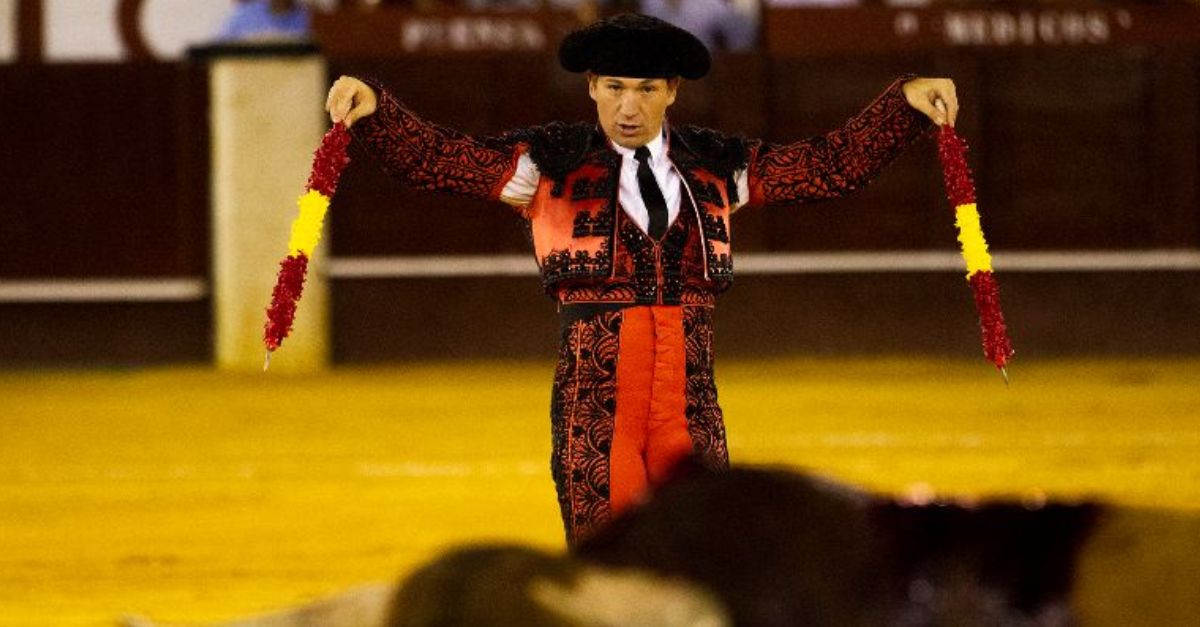 If you slow down the scene and watch it without assuming anything, you will see a pattern. The bull doesn’t attack the cape just lying on the ground. It reacts only when the fabric sways with sudden motion.