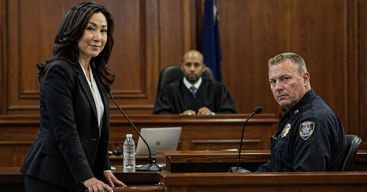 Monroe called Officer Daniels as her first witness, and he walked to the stand like he owned it. Uniform pressed, badge polished, that calm authority that makes juries trust cops instinctively. He was sworn in and settled into the witness chair like he'd done it a thousand times—because he probably had. Monroe walked him through his credentials, his training, his years of experience. Then she moved to the night in question. Daniels described pulling Eric over, approaching the vehicle, immediately noticing the signs of intoxication. 'Slurred speech, bloodshot eyes, the smell of alcohol,' he said, his voice steady and professional. He described administering the field sobriety tests in meticulous detail—the walk-and-turn, the one-leg stand, the horizontal gaze nystagmus test. Every word matched his report perfectly. I took notes, my pen moving across the page, but I was really watching the jury. They were buying it. Every word. He looked directly at them, his expression earnest and concerned. 'I've made hundreds of DUI arrests. This was textbook.'