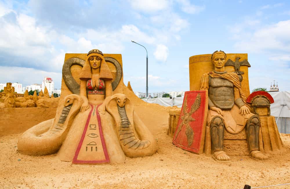 While their meeting was of strategic importance to the two powerful rulers, Antony no doubt had ulterior motives. Considering he’d had a crush on Cleopatra since she was 14, Antony was looking to form a romantic as well as strategic partnership with her. Cleopatra seemed open to the idea, and hosted Antony on her lavish cruise ship for two nights of gluttonous feasting. But her motivations were more political than romantic.