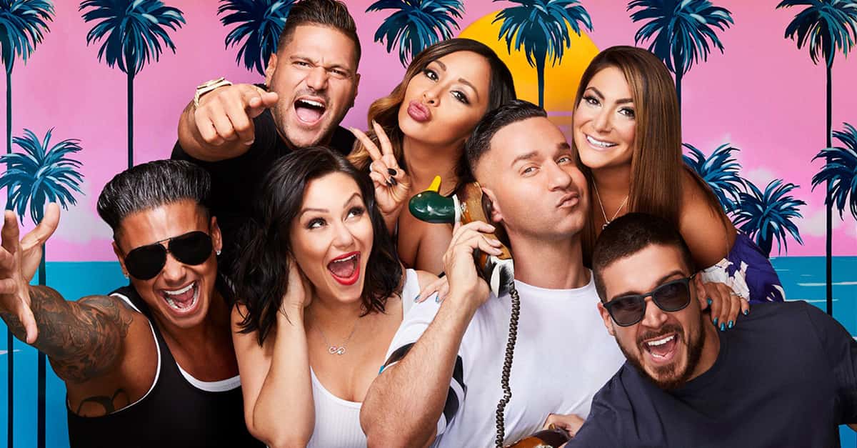 T-shirt time. Gym, tan, laundry. Ron-Ron juice. Where would we be without the cultural touchstones that Jersey Shore has blessed us with? When MTV’s flagship reality show premiered on December 3, 2009, it’s safe to say that neither the cast, the network execs, the viewers, or the shore itself had any idea how much impact it was about to make—or that it would last for 6 whole seasons and a reunion. The blockbuster hit reality show followed the lives of Paul ‘Pauly D’ DelVecchio, Nicole Polizzi, Michael ‘The Situation’ Sorrentino, Samantha ‘Sammi Sweetheart’ Giancola, Ronnie Ortiz-Magro, Jennifer ‘JWoww’ Farley, Vinny Guadagnino, Angelina Pivarnick, and Deena Nicole Cortese. The premise of the show…never really mattered, to be honest. It was all about the characters! For 3 years, the residents of Seaside Heights, New Jersey presumably lived in fear as the gang tore up its beaches, clubs, and bars, between occasional shifts at the T-shirt store. Soon after it premiered, the show became the guilty pleasure of thousands of viewers, the target of just as many critics, and launched a slew of spin-offs and imitators.