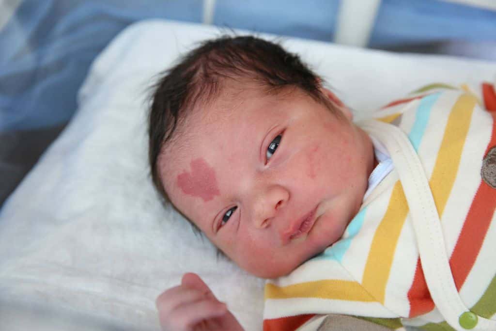 Most babies are born with some kind of birthmark that either stays with them their whole life or fades as they grow up. Birthmarks are often due to labor, when blood vessel are dilated. Baby birthmarks have all kinds of crazy nicknames and folk meanings: “Angel Kisses” are said to be a gift from heavenly powers, “Stork Bites” are left over from the stork that brought the baby, “Strawberry Marks” reveal the unfulfilled desires of the mother, and “Port Wine Stains” are thought to be scars from burns that did not fully heal from a past life.