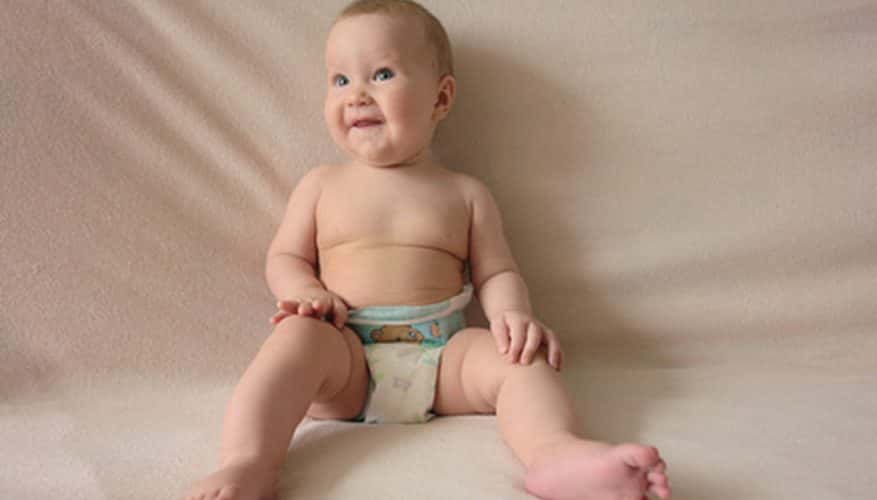 Even though babies are born with more bones than they will have as an adult, one body part they do lack are kneecaps. Kneecap-like cartilage structures will develop at around 6 months.