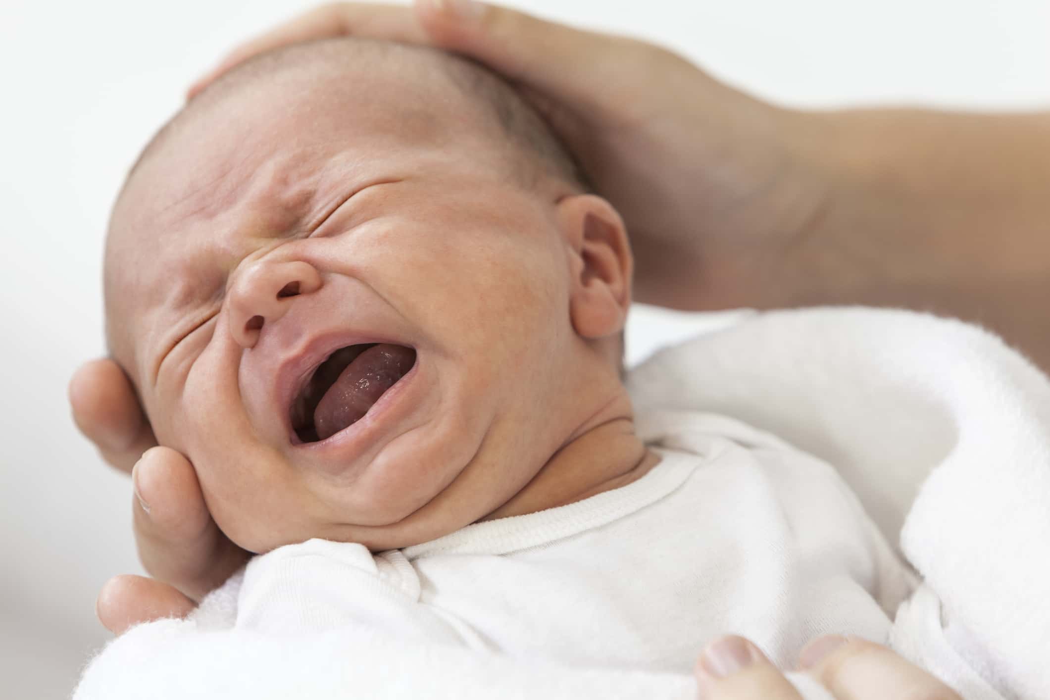 Just as their first emotion-driven smile doesn't appear until they’re around a month old, a baby’s first emotion-driven cry occurs somewhere between 2 and 4 months. Before then, a baby's tearing is considered basal (for moisture) or reflex (for irritation) tearing, and is mainly a physical response.